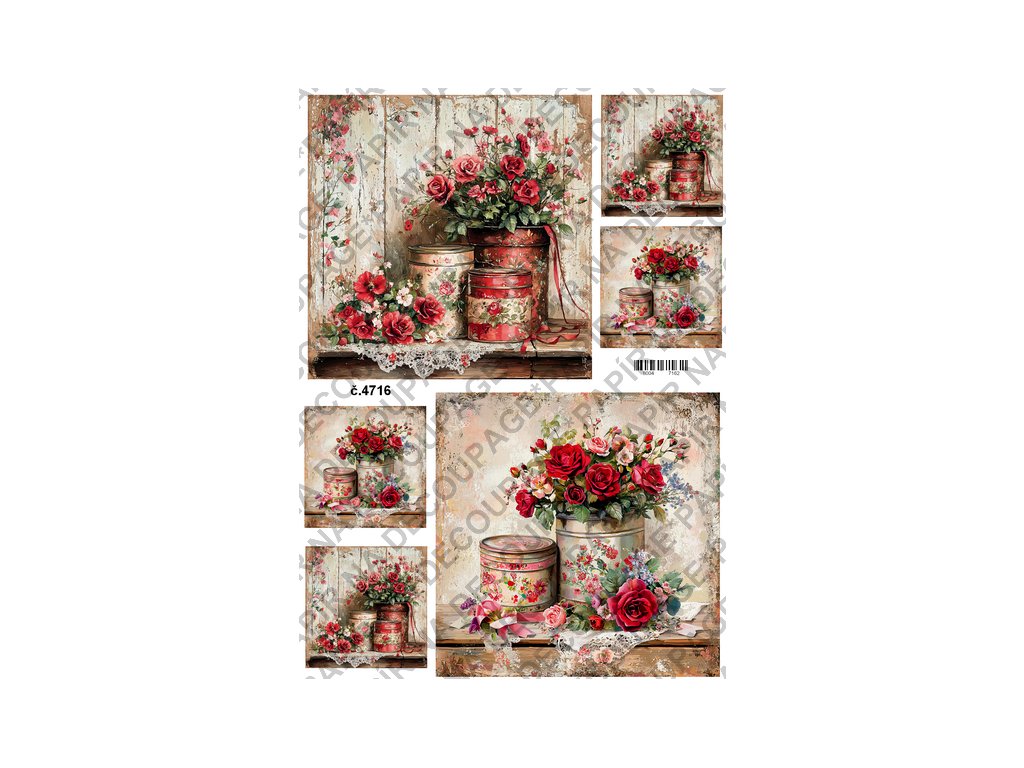 Rýžový a soft papír na decoupage - Květiny s plechovkou - KB4716