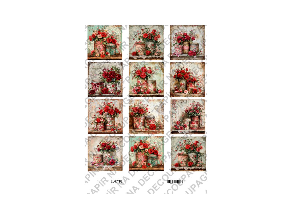 Rýžový a soft papír na decoupage - Květiny s plechovkou - KB4718