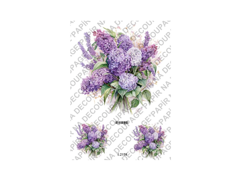 Rýžový a soft papír na decoupage - Kytice lila - KB2159