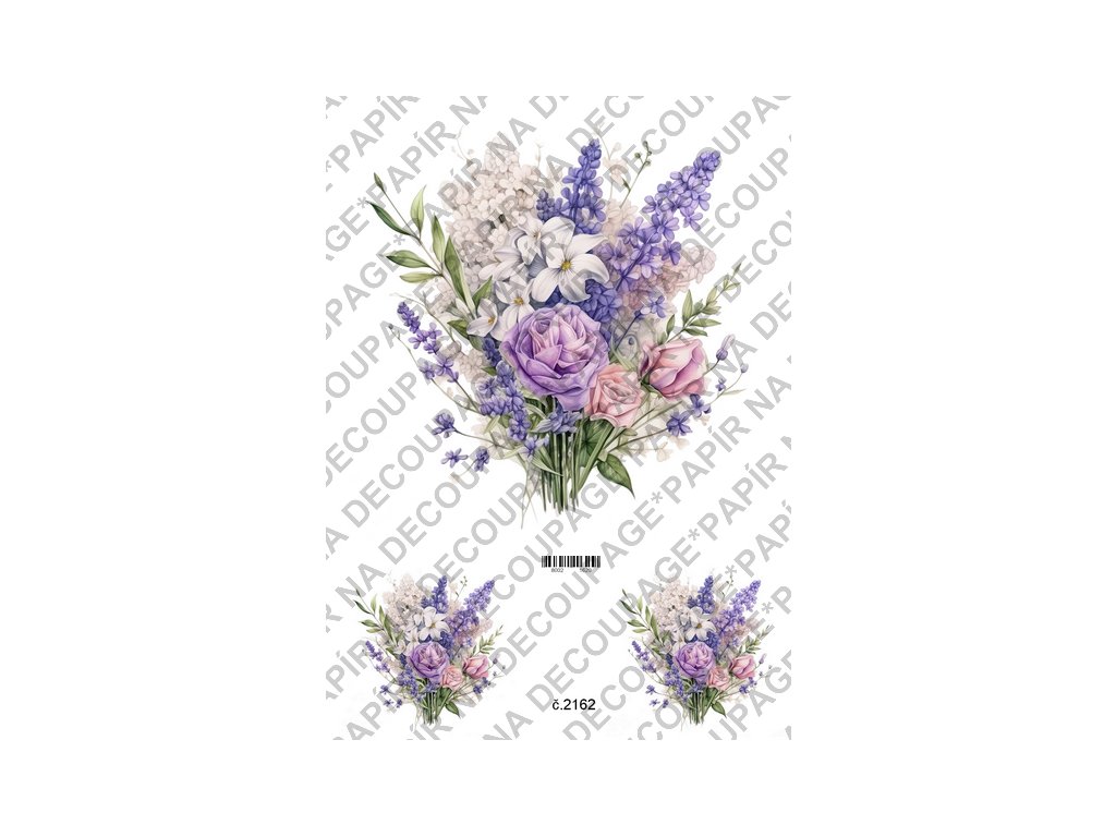 Rýžový a soft papír na decoupage - Kytice lila - KB2162