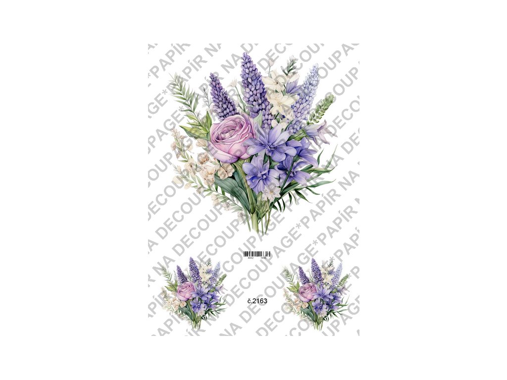 Rýžový a soft papír na decoupage - Kytice lila - KB2163