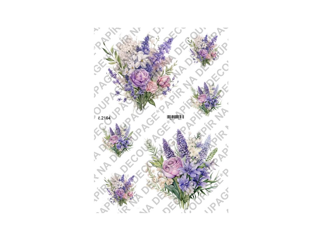 Rýžový a soft papír na decoupage - Kytice lila - KB2164