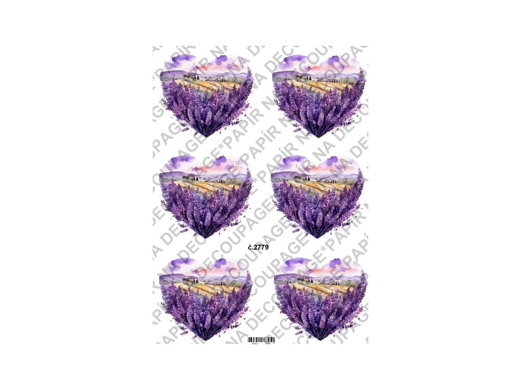 Rýžový a soft papír na decoupage - Levandule srdce - KB2779