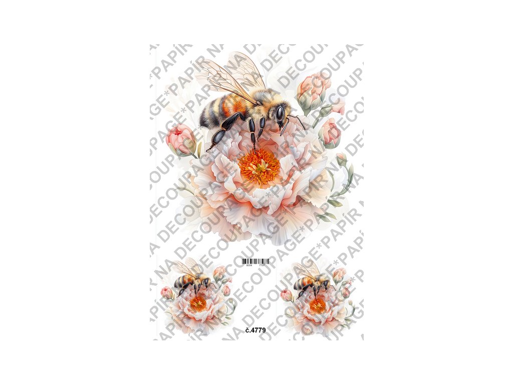 Rýžový a soft papír na decoupage - Včelka na květině - KB4779