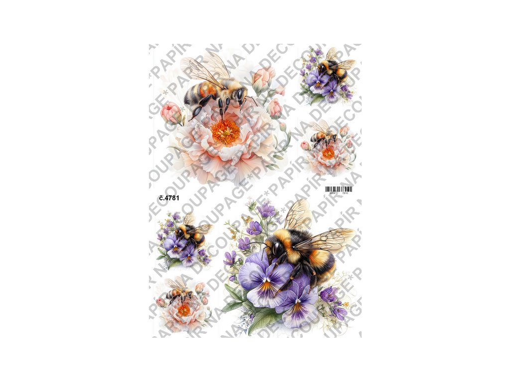 Rýžový a soft papír na decoupage - Včelka na květině - KB4781