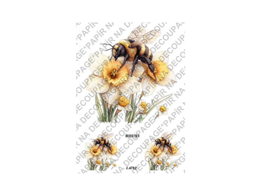 Rýžový a soft papír na decoupage - Včelka na květině - KB4782