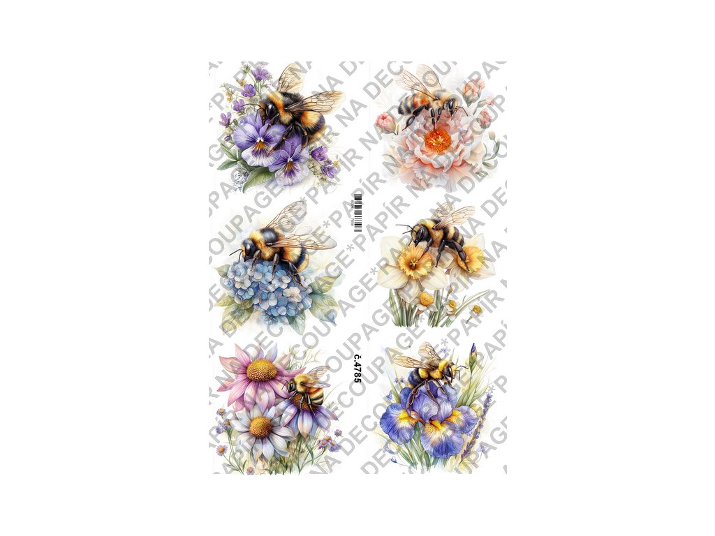 Rýžový a soft papír na decoupage - Včelka na květině - KB4785