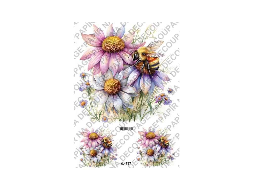 Rýžový a soft papír na decoupage - Včelka na květině - KB4787