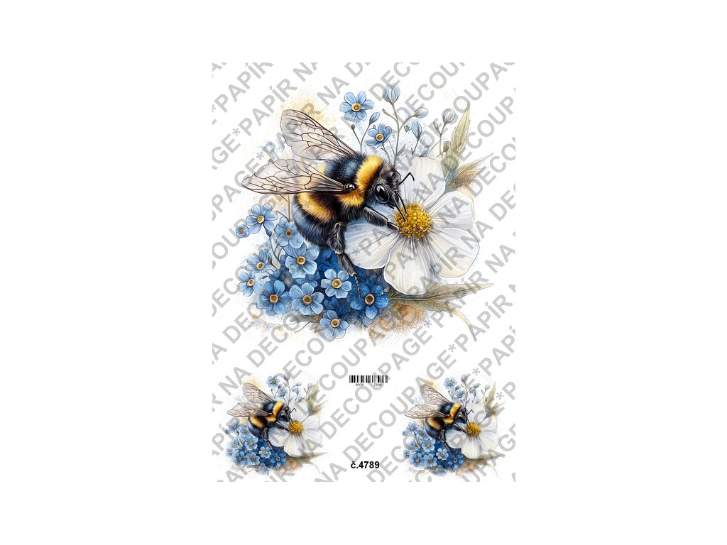 Rýžový a soft papír na decoupage - Včelka na květině - KB4789