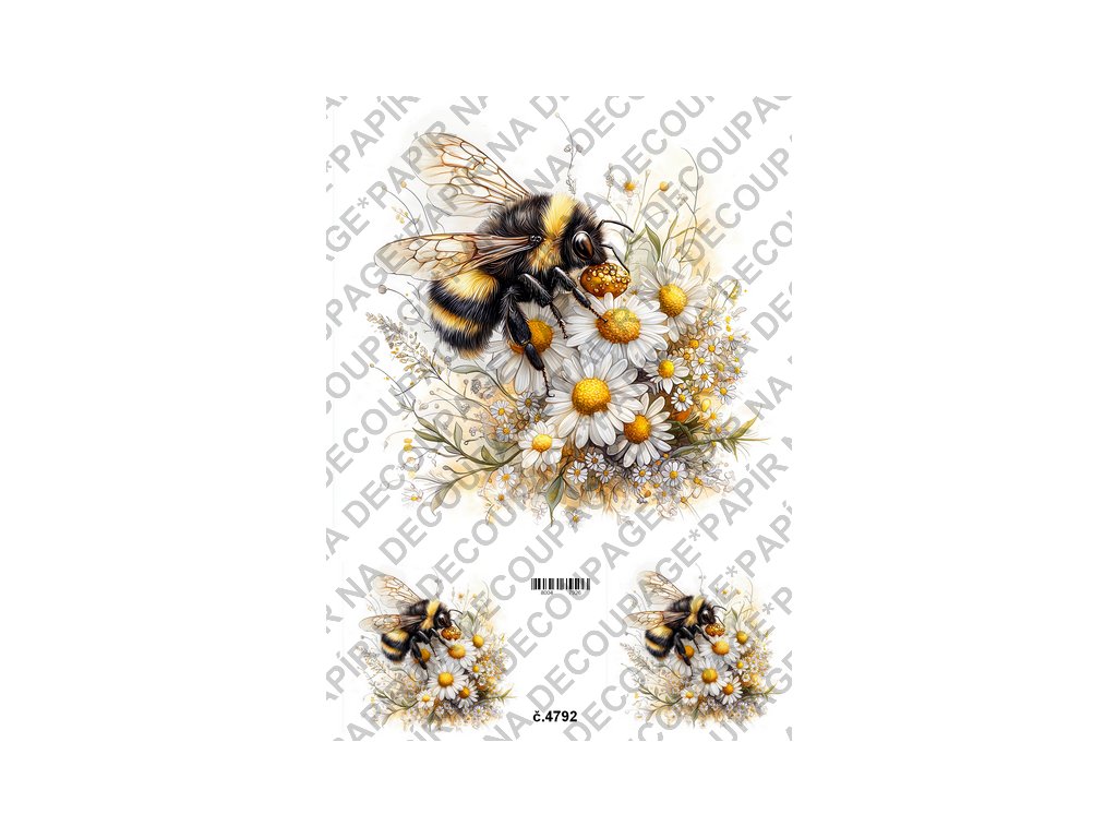 Rýžový a soft papír na decoupage - Včelka na květině - KB4792