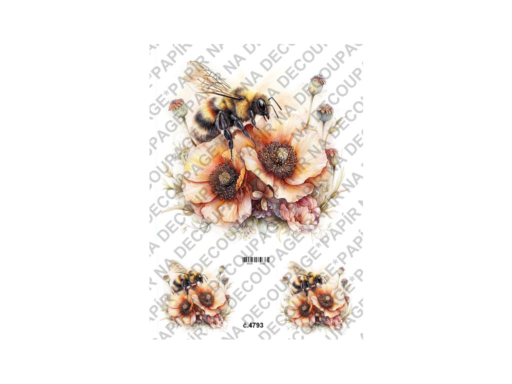 Rýžový a soft papír na decoupage - Včelka na květině - KB4793