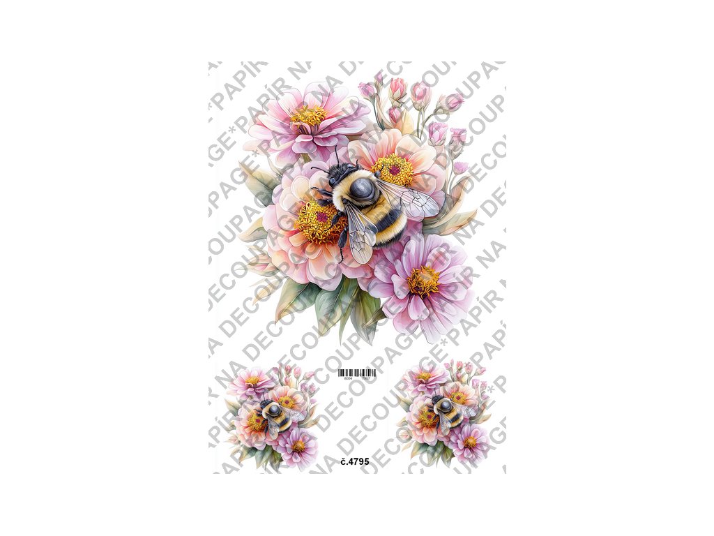 Rýžový a soft papír na decoupage - Včelka na květině - KB4795