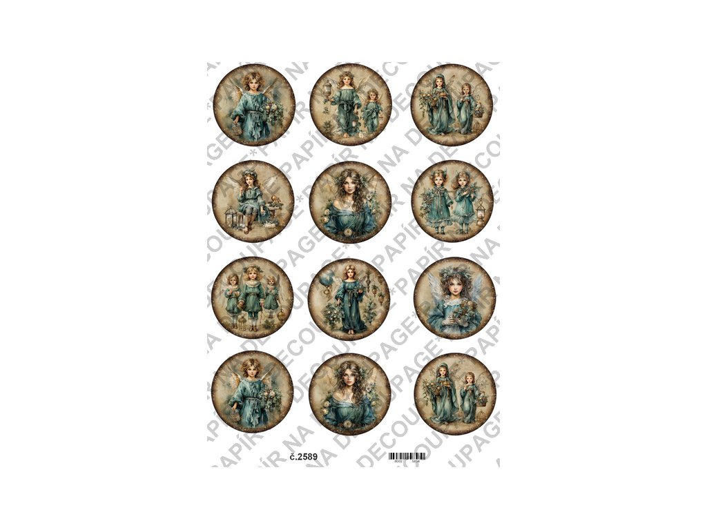 Rýžový a soft papír na decoupage - Viktroriánské, retro, andělka - KB2589