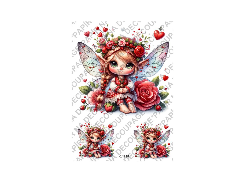 Rýžový a soft papír na decoupage - Víla červená - KB01916