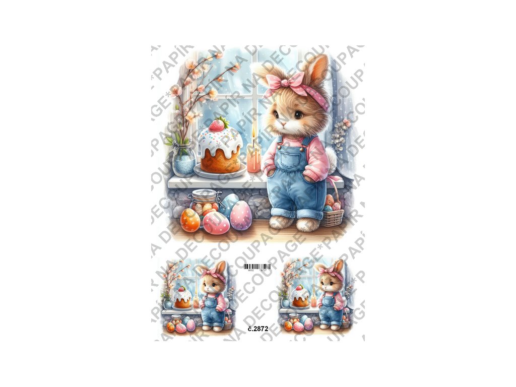 Rýžový a soft papír na decoupage - Zajíček u okna - KB2872