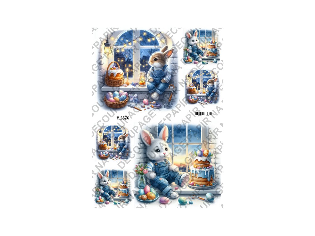 Rýžový a soft papír na decoupage - Zajíček u okna - KB2876