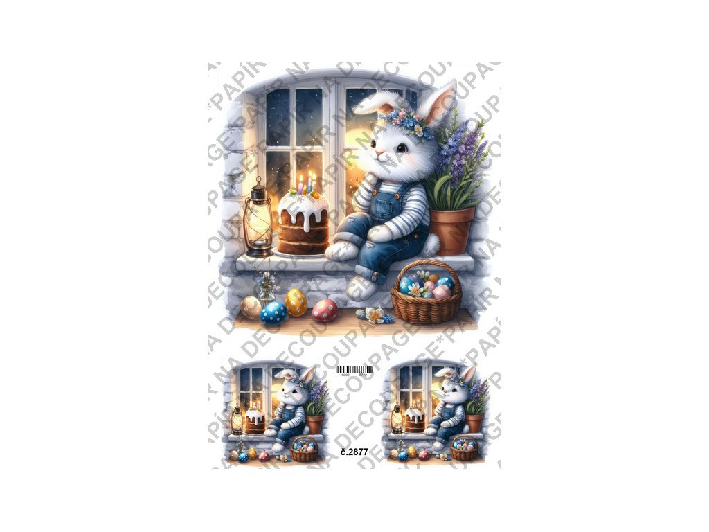 Rýžový a soft papír na decoupage - Zajíček u okna - KB2877