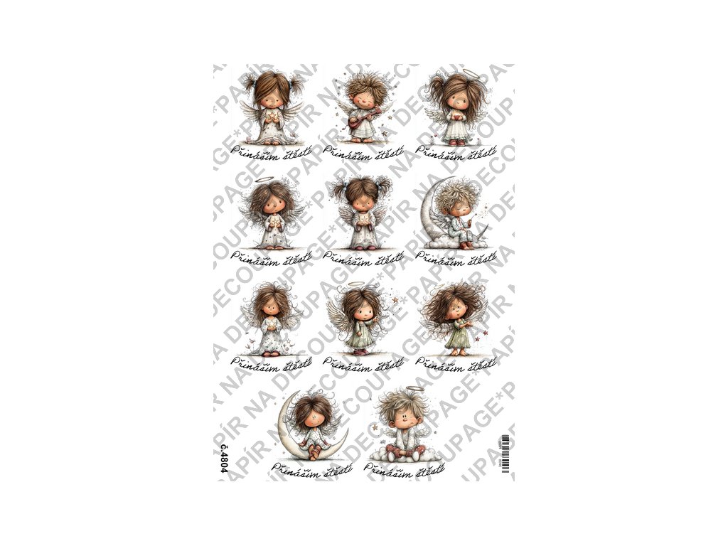Rýžový papír, soft papír na decoupage - Andílek s textem - KB4804
