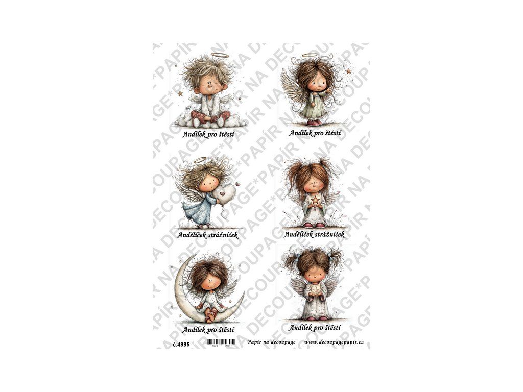Rýžový papír, soft papír na decoupage - Andílek s textem - KB4995