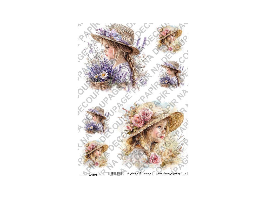 Rýžový papír, soft papír na decoupage - Děvčátko v klobouku - KB4893