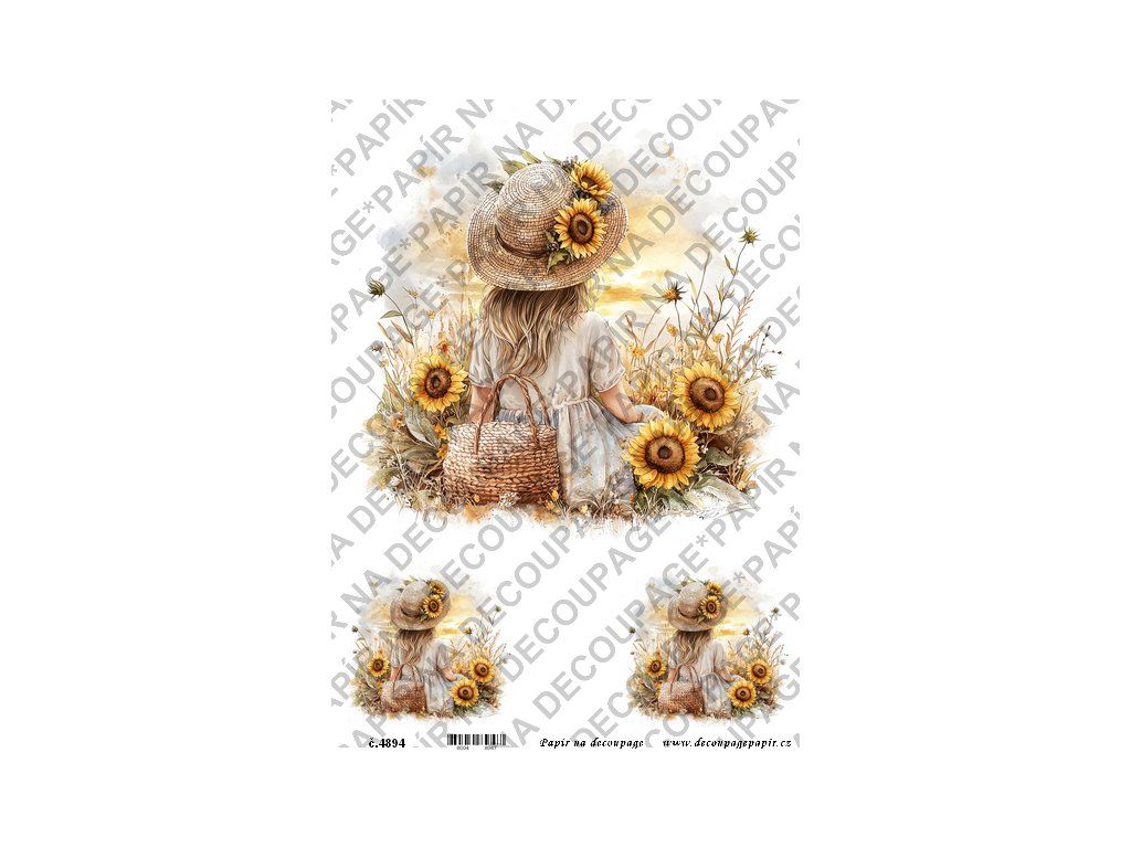 Rýžový papír, soft papír na decoupage - Děvčátko v klobouku - KB4894