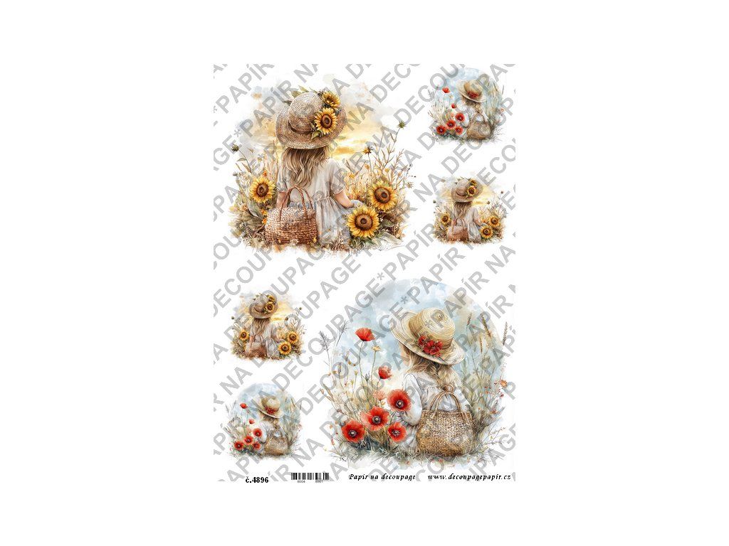 Rýžový papír, soft papír na decoupage - Děvčátko v klobouku - KB4896