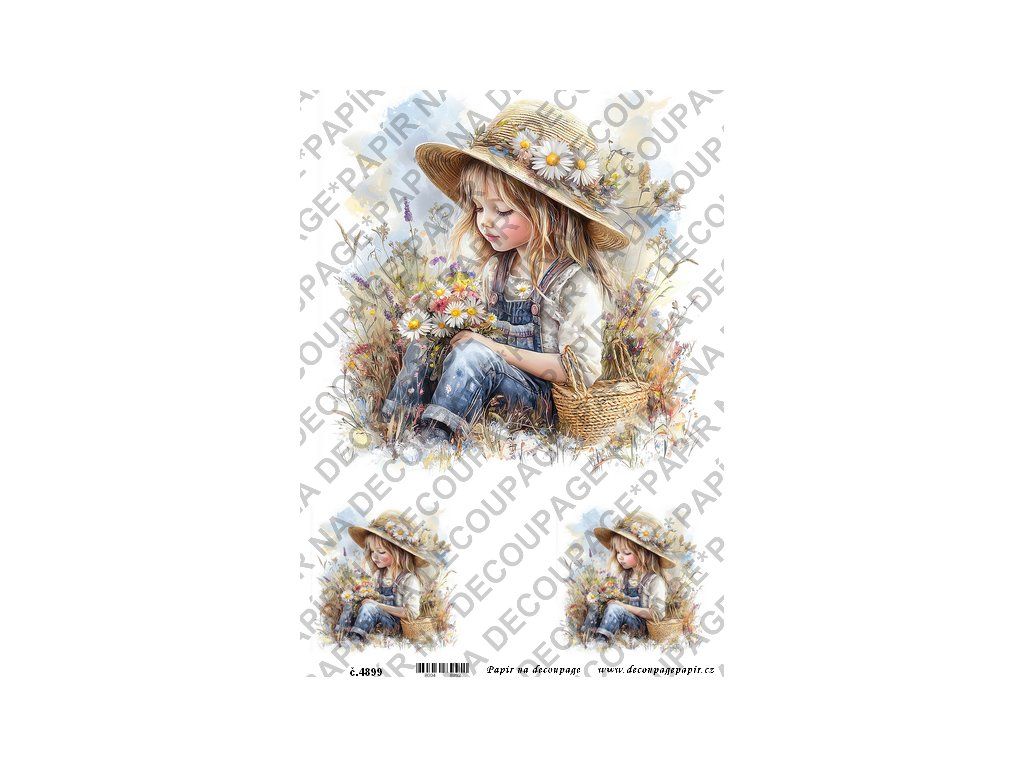 Rýžový papír, soft papír na decoupage - Děvčátko v klobouku - KB4899