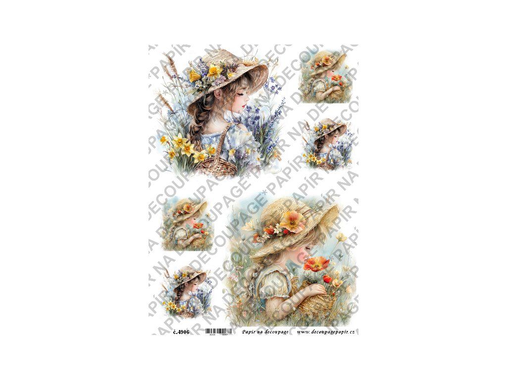 Rýžový papír, soft papír na decoupage - Děvčátko v klobouku - KB4906