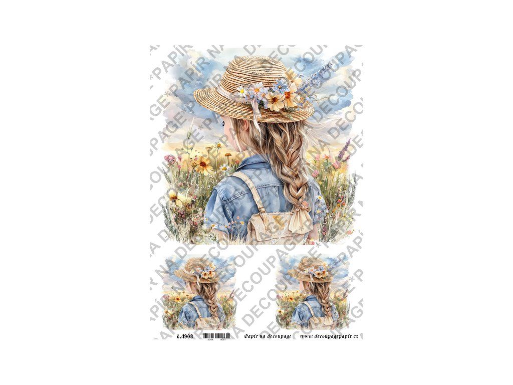 Rýžový papír, soft papír na decoupage - Děvčátko v klobouku - KB4908