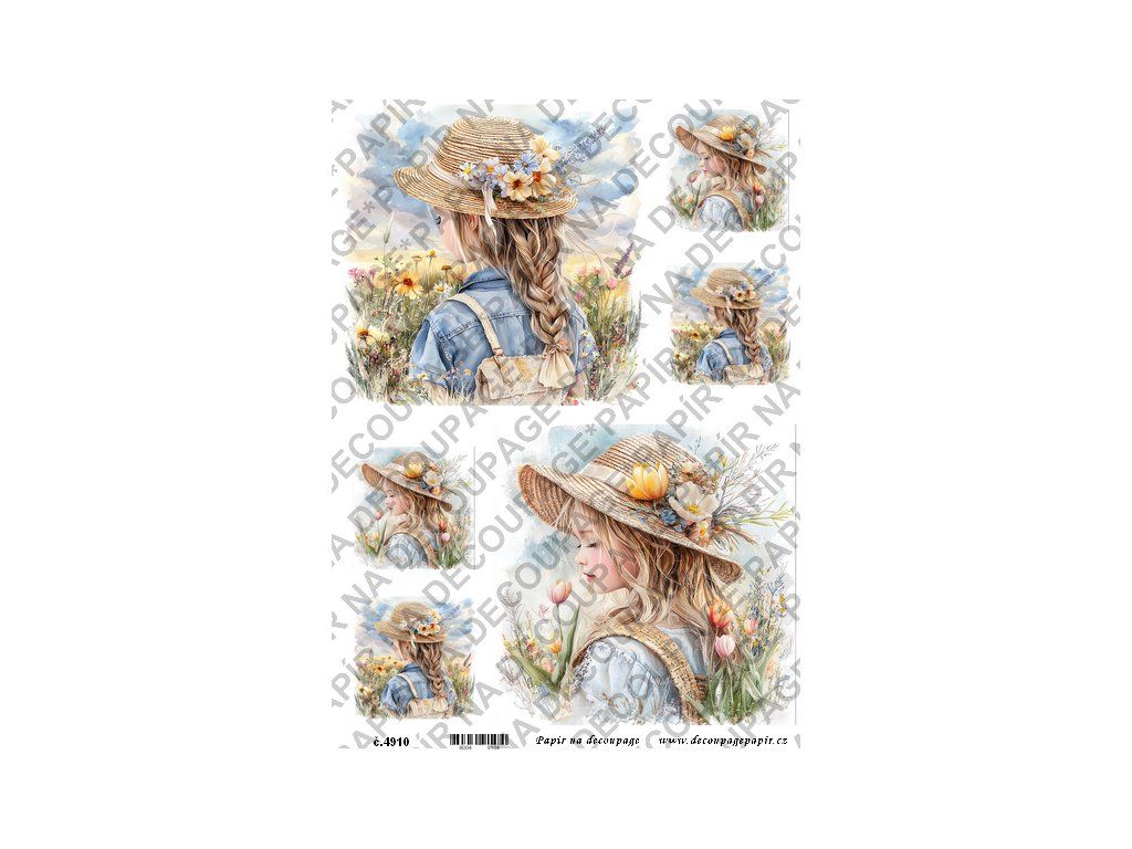 Rýžový papír, soft papír na decoupage - Děvčátko v klobouku - KB4910