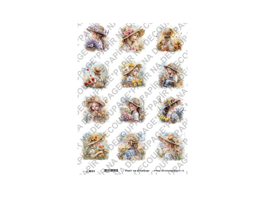 Rýžový papír, soft papír na decoupage - Děvčátko v klobouku - KB4911
