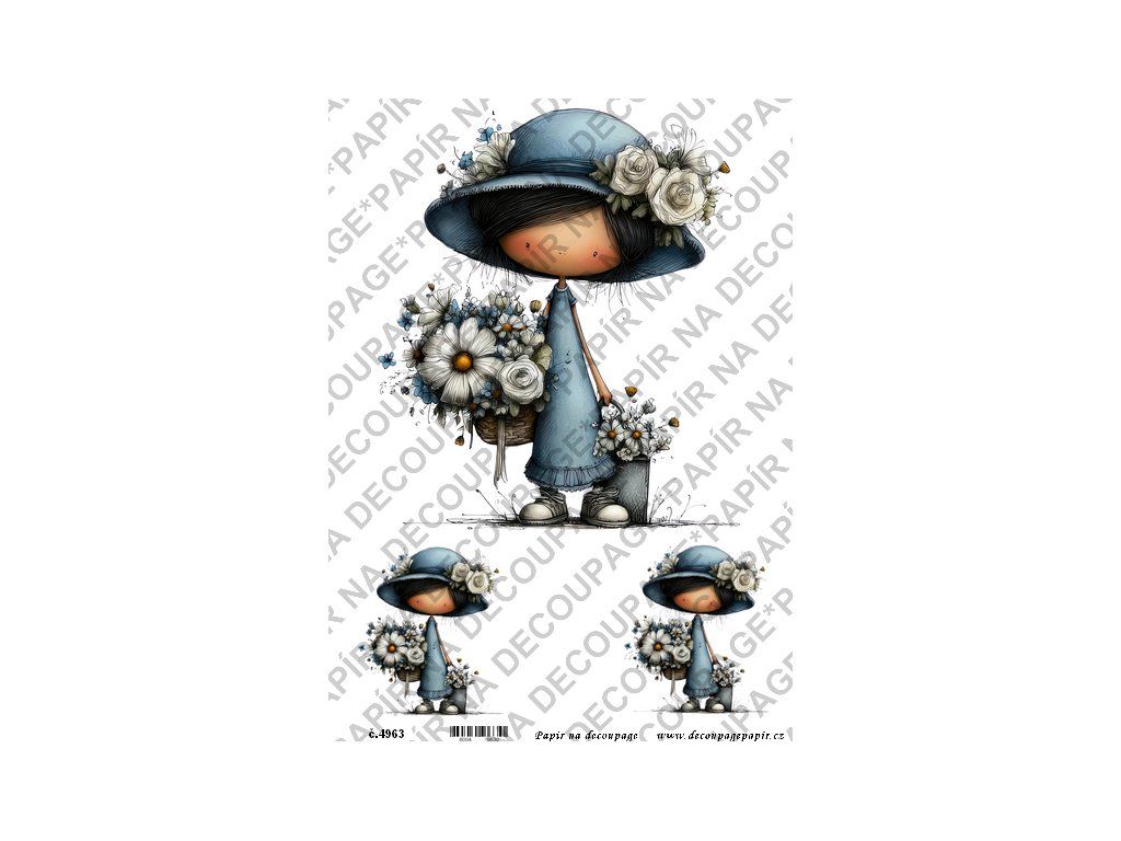 Rýžový papír, soft papír na decoupage - Holčička v modrém - KB4963