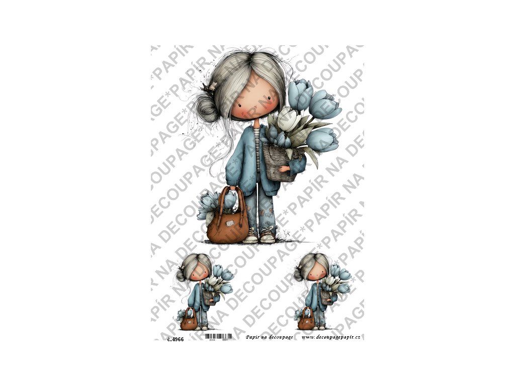 Rýžový papír, soft papír na decoupage - Holčička v modrém - KB4966