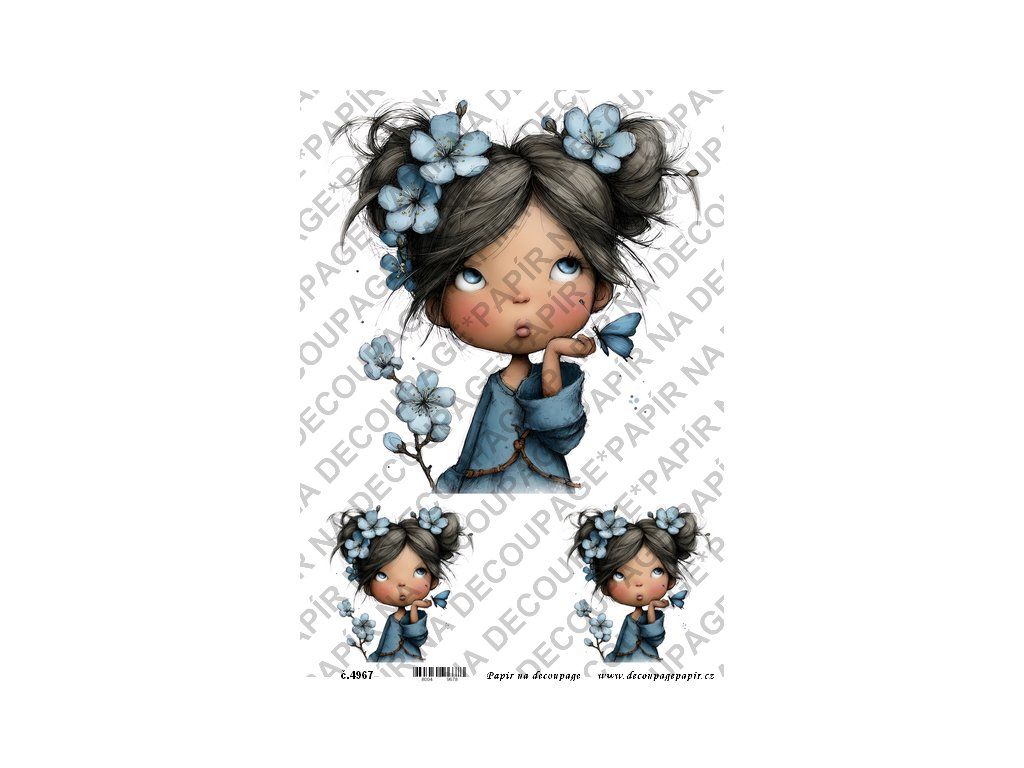 Rýžový papír, soft papír na decoupage - Holčička v modrém - KB4967