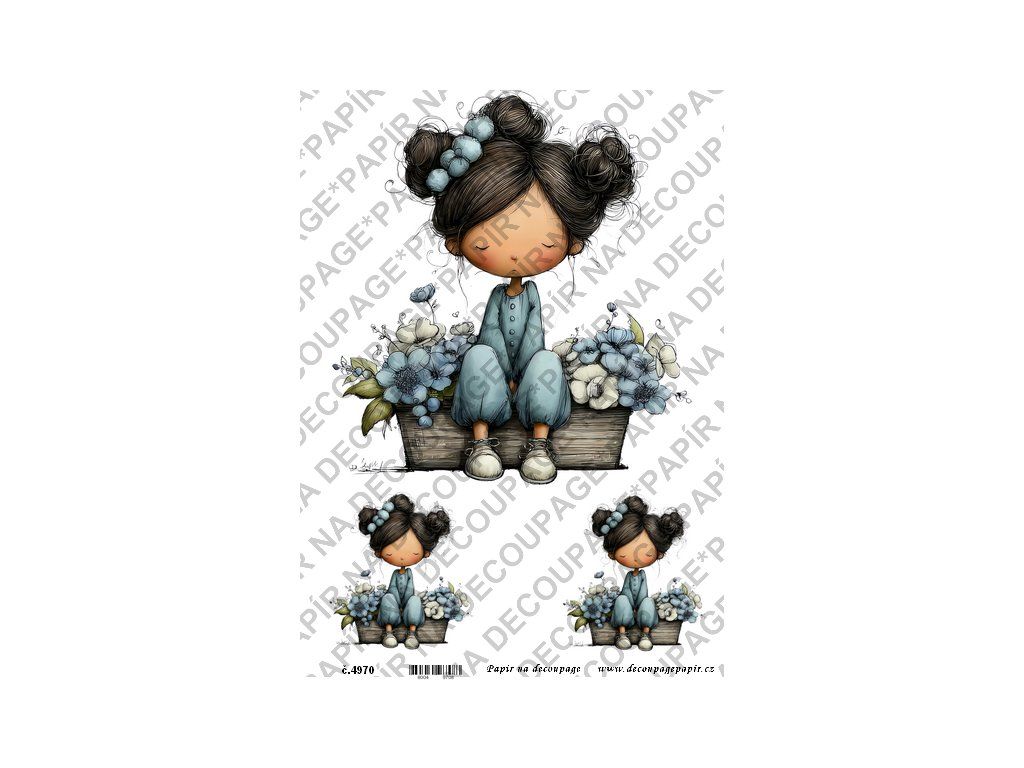 Rýžový papír, soft papír na decoupage - Holčička v modrém - KB4970