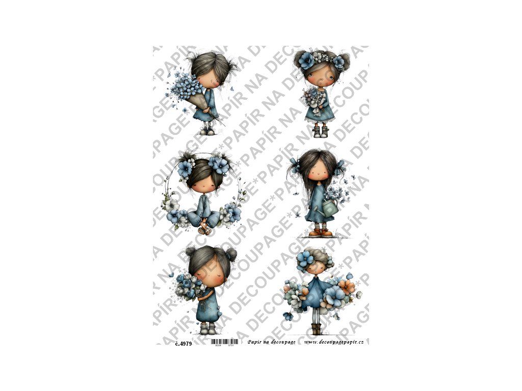 Rýžový papír, soft papír na decoupage - Holčička v modrém - KB4979
