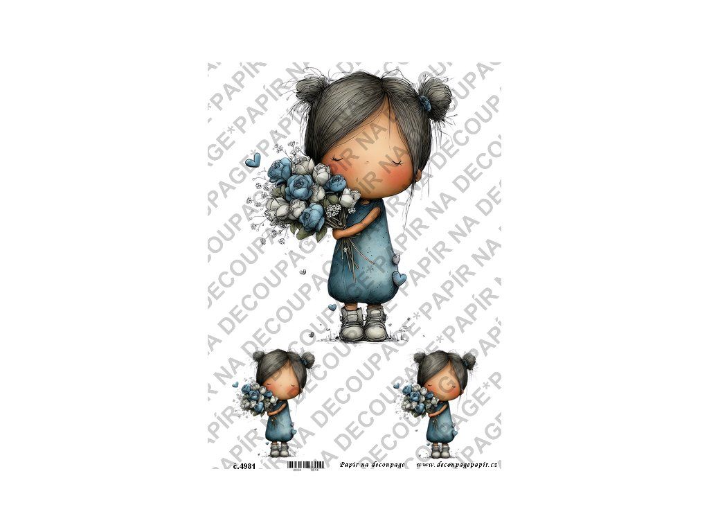 Rýžový papír, soft papír na decoupage - Holčička v modrém - KB4981