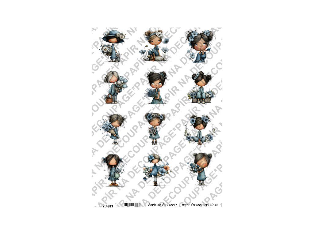 Rýžový papír, soft papír na decoupage - Holčička v modrém - KB4983