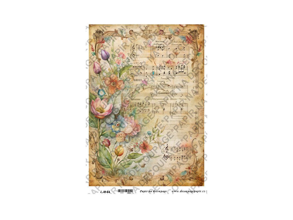 Rýžový papír, soft papír na decoupage - Noty color - KB4944