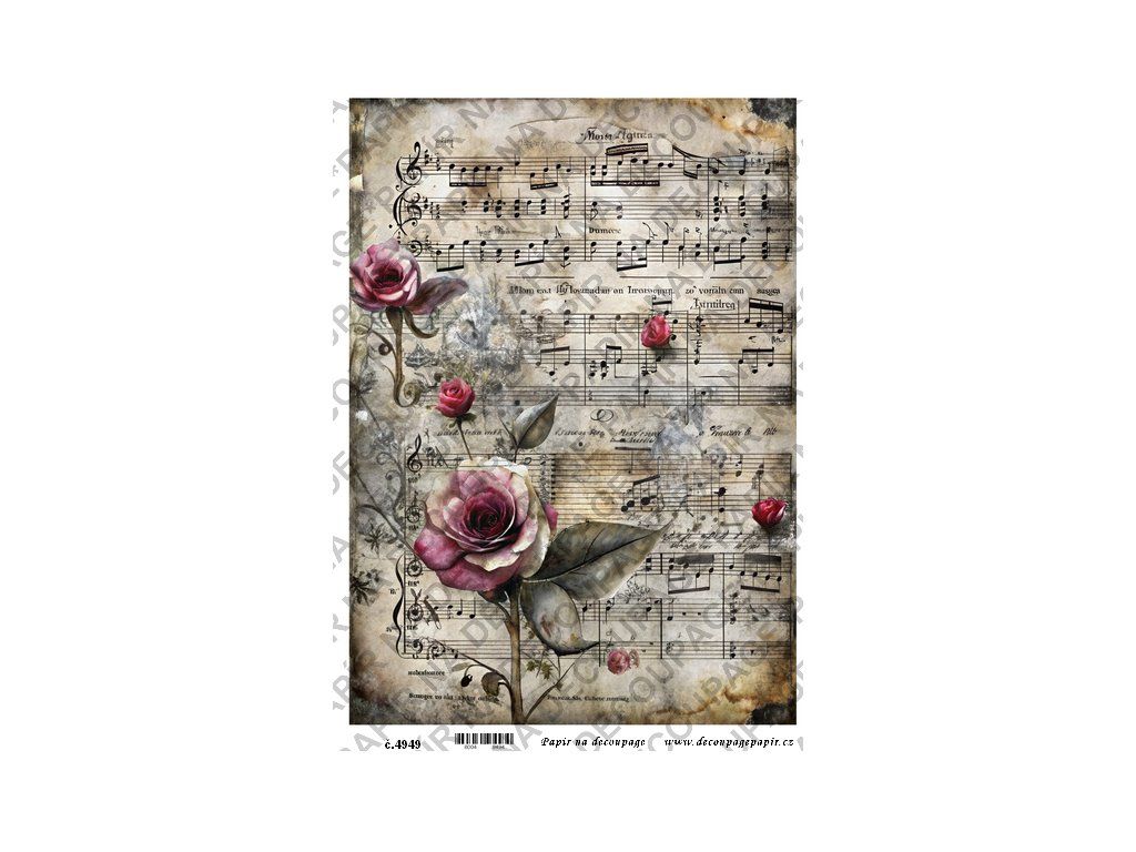 Rýžový papír, soft papír na decoupage - Noty color - KB4949