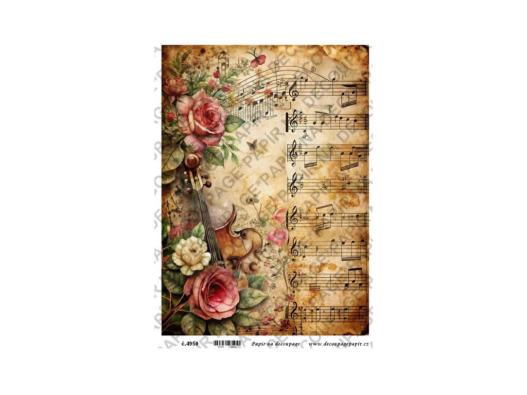 Rýžový papír, soft papír na decoupage - Noty color - KB4950