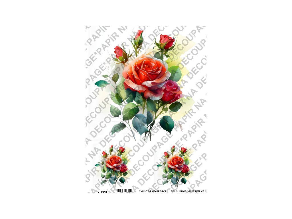 Rýžový papír, soft papír na decoupage - Růže color - KB4931