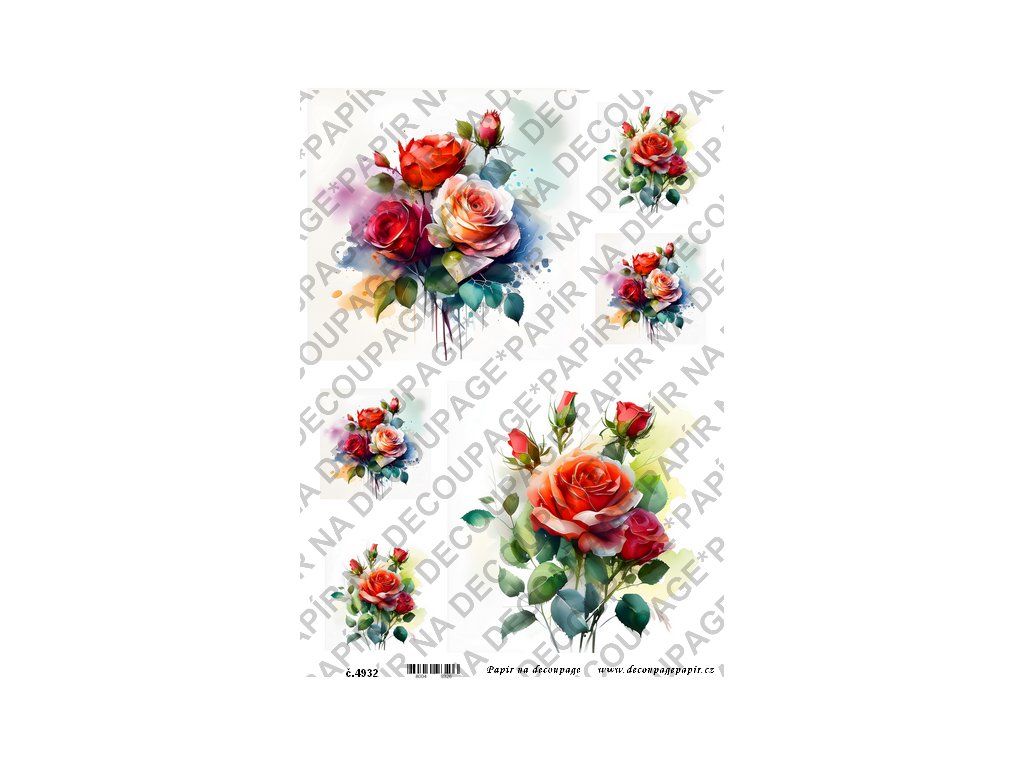 Rýžový papír, soft papír na decoupage - Růže color - KB4932