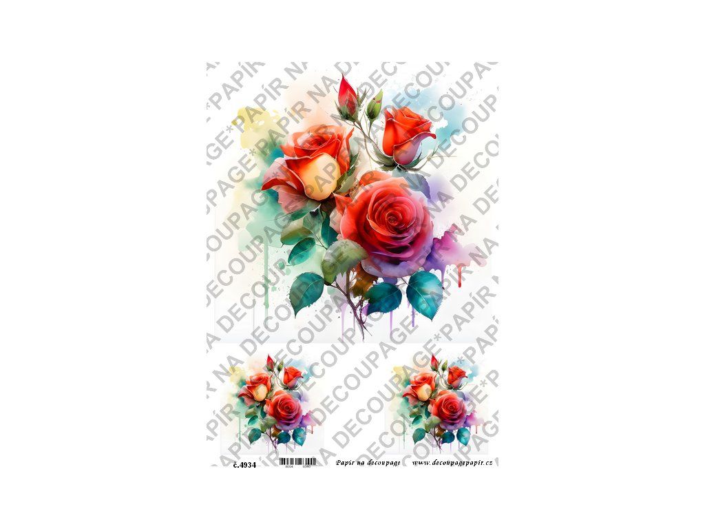 Rýžový papír, soft papír na decoupage - Růže color - KB4934