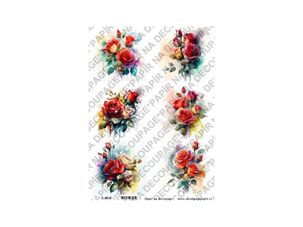 Rýžový papír, soft papír na decoupage - Růže color - KB4939