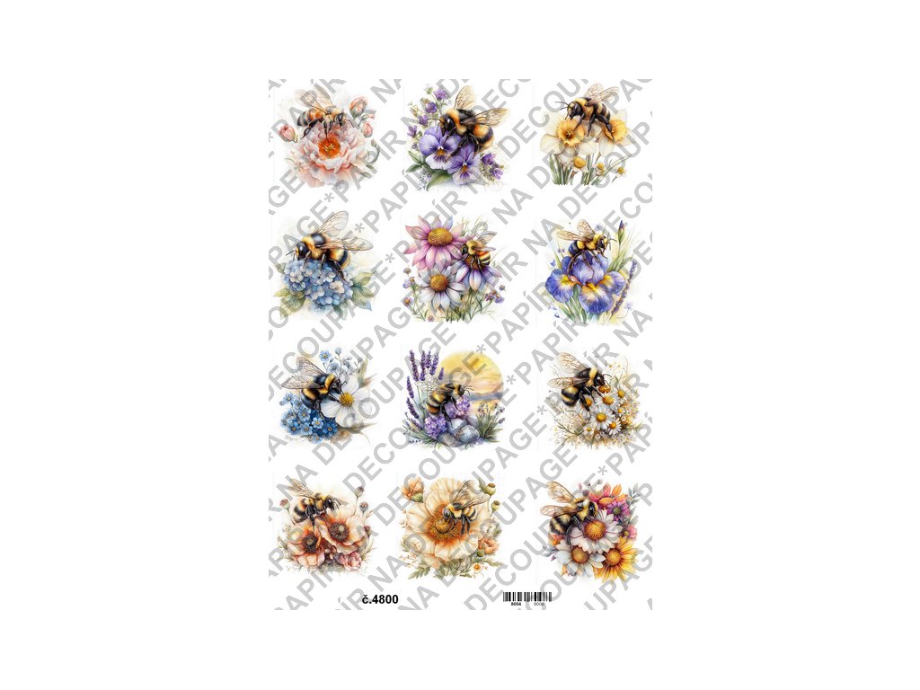 Rýžový papír, soft papír na decoupage - Včelka na květině - KB4800