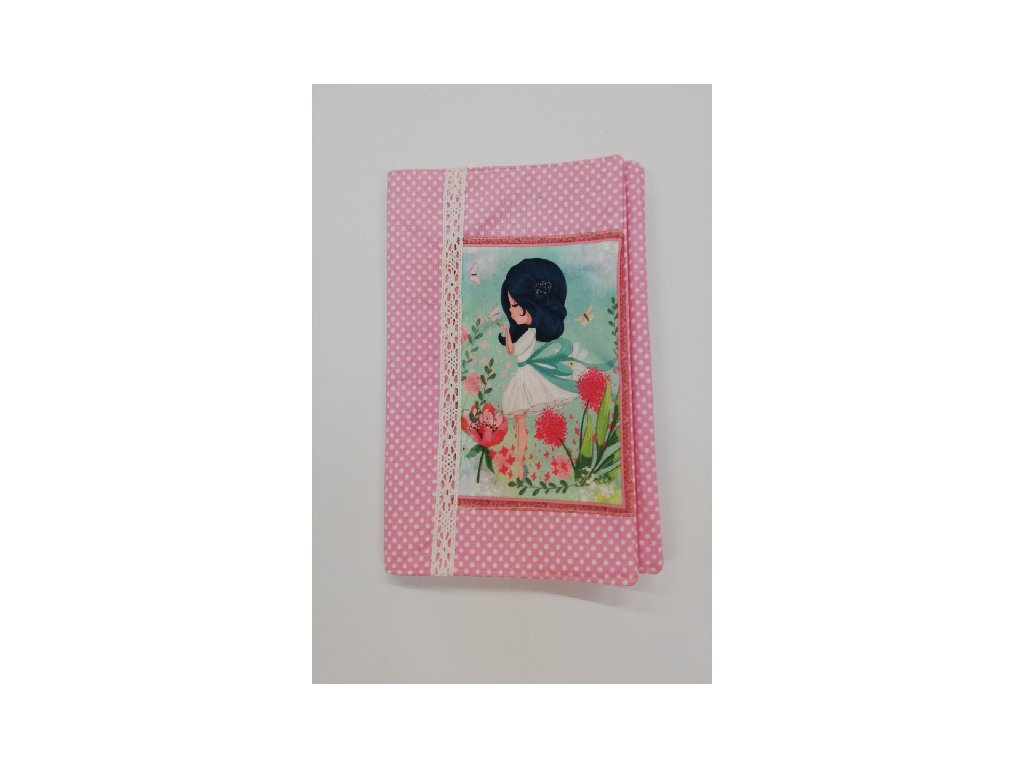 Obal na knihu nebo diář - 15,5 x 21,5 cm - holčička s tyrkysovou mašlí na zelené