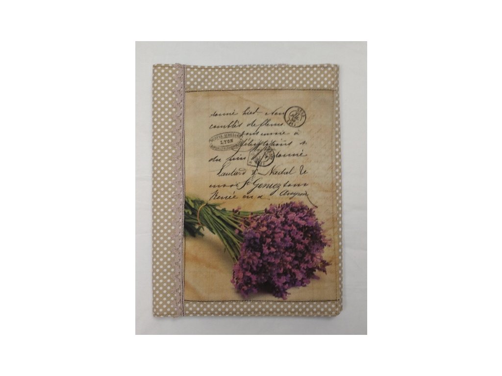Obal na knihu nebo diář - 17 x 22,5 cm - Levandule a písmo