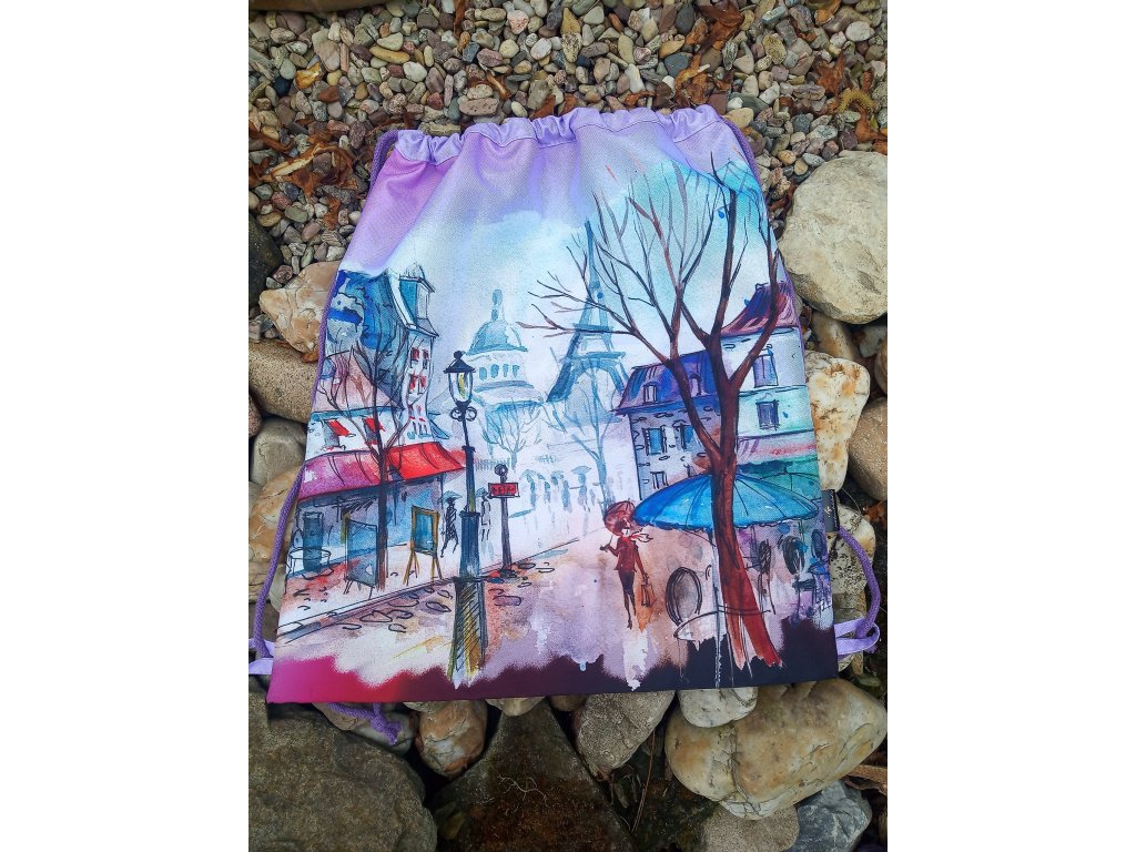 Stahovací vak digitální tisk 47 x 41 cm - Paříž fialová