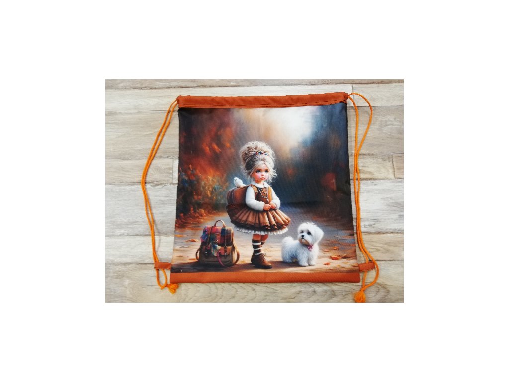 Stahovací vak digitální tisk 47 x 43 cm - Holčička s pejskem